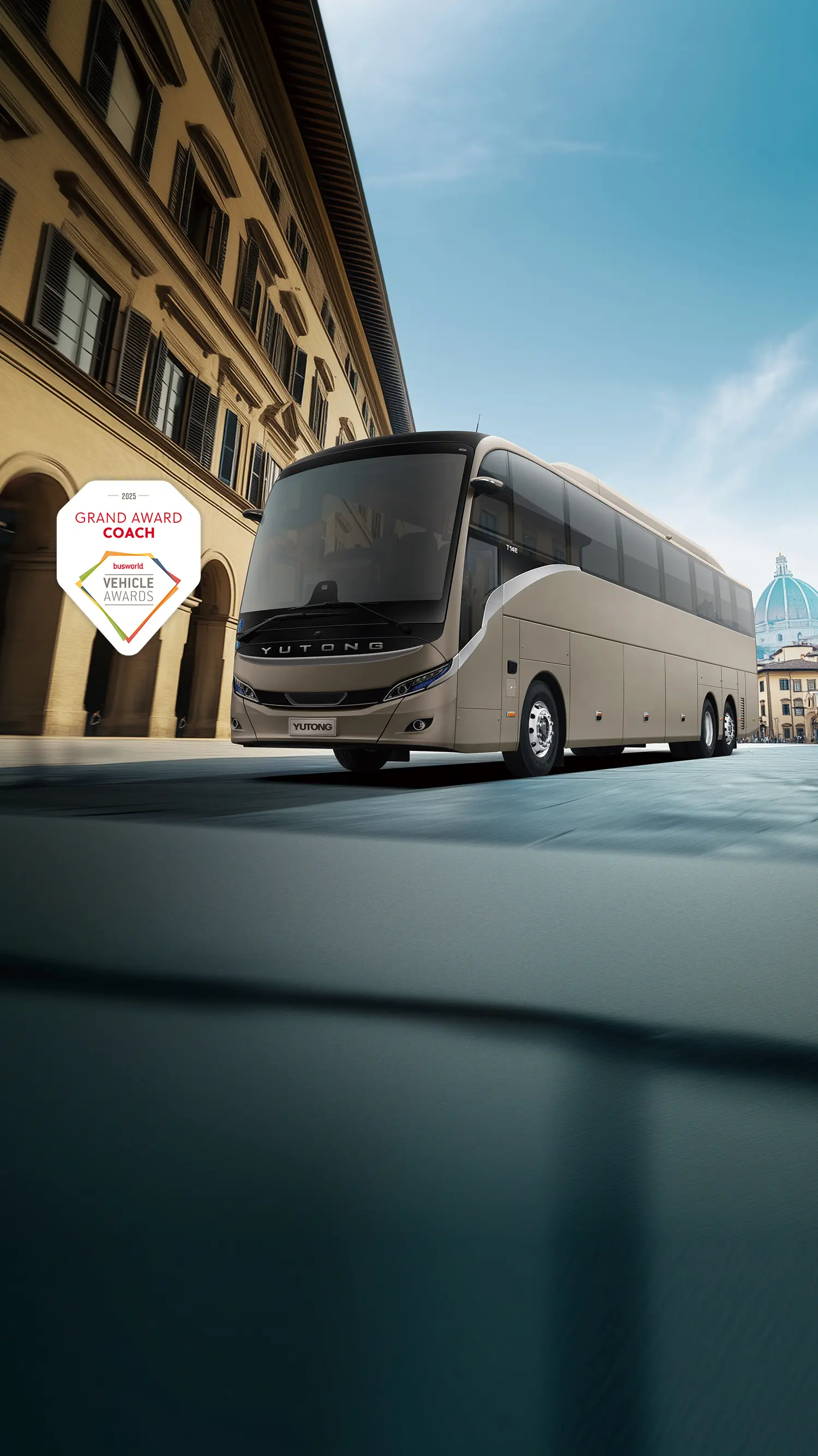 The Yutong T14E is a 14m high-end battery-electric tourism coach offering long driving range, large space, and ultimate safety for an elevated journey.
